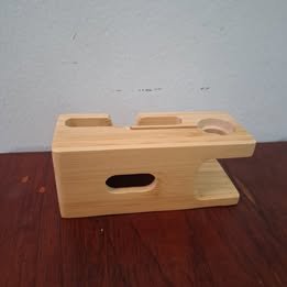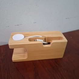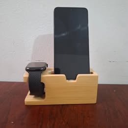 Este portacelular y portareloj para cargador, hecho de madera de bamboo, combina estética y funcionalidad para mantener tus dispositivos organizados mientras se cargan. Su diseño compacto y natural complementará cualquier espacio.